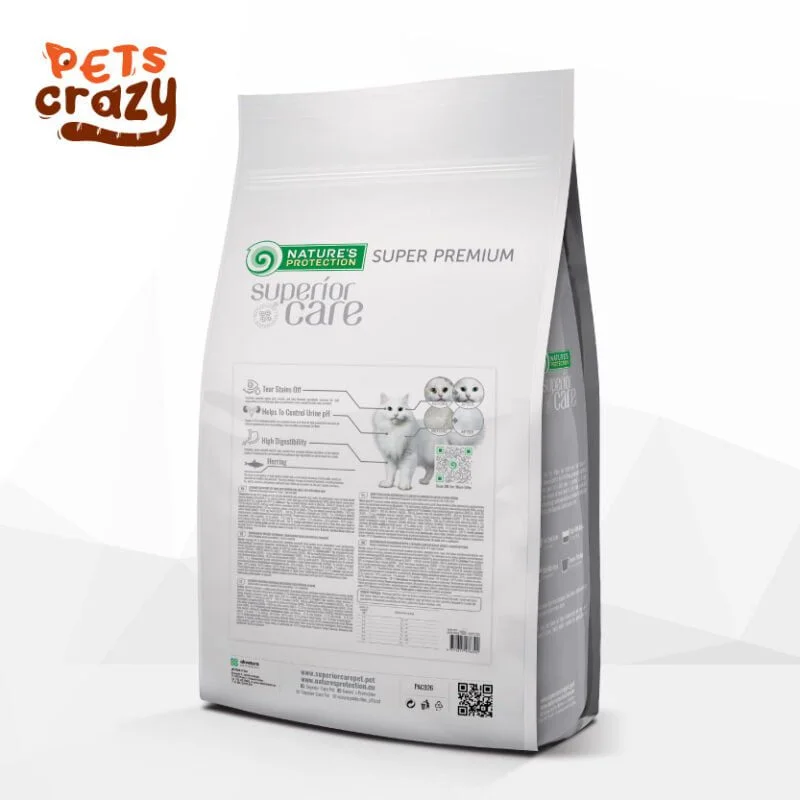 White Cats with Herring – Tear Stain Off | Superior Care Cat Dry Food Nature’s Protection