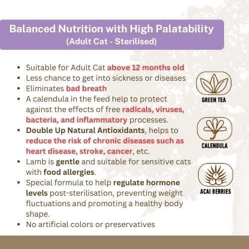 Sterilised Lamb Grain Free for Adult Cat | Oaks Farm